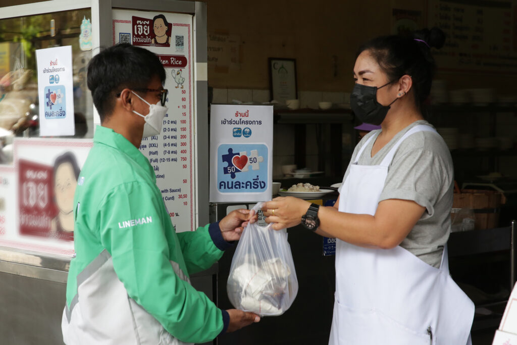 ที่ผ่านมา มีร้านอาหารเข้าร่วมโครงการคนละครึ่งกับแพลตฟอร์มฟู้ดดีลิเวอรี่เกือบ 100,000 ร้าน โดยกว่า 60–70% เลือกใช้ LINE MAN รวมถึงยังมียอดผู้ใช้งานคนละครึ่งผ่าน LINE MAN จากเฟสที่ผ่านมาทั้งหมดกว่า 7 ล้านสิทธิ์ สะท้อนถึงความเป็น “เบอร์ 1 คนละครึ่ง” โดยพร้อมเดินหน้าสนับสนุนร้านอาหารและผู้บริโภคเต็มรูปแบบ และใช้พลังของ “หนุ่ม-กรรชัย กำเนิดพลอย” ในฐานะพรีเซนเตอร์ ผลักดันการใช้คนละครึ่งผ่าน LINE MAN ให้เข้าถึงทุกร้าน ทุกบ้าน และทุกชุมชนทั่วประเทศ