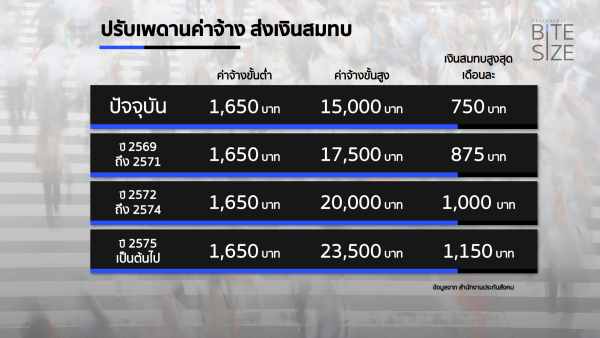 ราชกิจจานุเบกษา ประกาศกฎกระทรวงฉบับใหม่ ปรับเพดานค่าจ้างสำหรับส่งเงินสมทบ-คำนวณสิทธิประโยชน์ผู้ประกันตน ม.33 แบบบันได 3 ขั้น เริ่มเพดานสูงสุดใหม่ที่ 17,500 บาท ตั้งแต่ 1 ม.ค. 2569 และปรับสูงสุดที่ 23,000 บาท ตั้งแต่ปี 2575 เป็นต้นไป