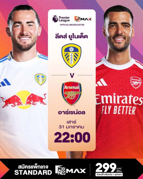 ประเดิมความมันส์พร้อมกันสามคู่ในช่วงค่ำคืน วันเสาร์ที่ 31 มกราคม 2569 เวลา 22.00 น. Monomax ถ่ายทอดสดเริ่มจาก ไบรท์ตัน แอนด์ โฮฟ อัลเบียน ทีมจากกลุ่มกลางตาราง เปิดบ้านรับมือ เอฟเวอร์ตัน ที่ยังต้องการแต้มเพื่อสร้างความมั่นใจและขยับสถานการณ์บนตาราง ต่อเนื่องด้วยเกมที่ถูกจับตามองอย่าง ลีดส์ ยูไนเต็ด เปิดรังดวล อาร์เซนอล ทีมระดับหัวตาราง ซึ่งต้องการรักษาความต่อเนื่องในการลุ้นแชมป์ โดยคู่นี้ถ่ายทอดสดทั้ง Monomax และ ช่อง MONO29