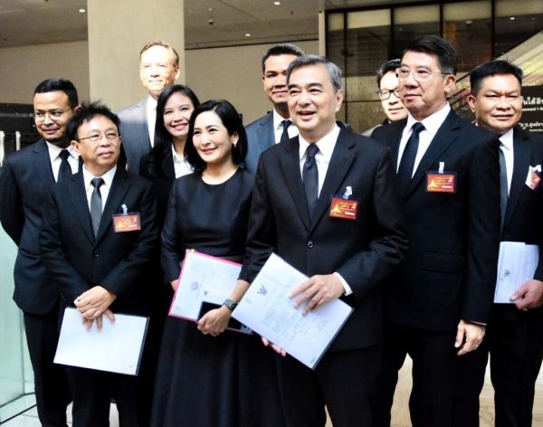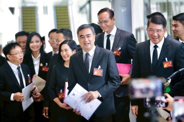 นายอภิสิทธิ์ เวชชาชีวะ หัวหน้าพรรคประชาธิปัตย์ (ปชป.) ในฐานะ สส.บัญชีรายชื่อ นำ สส.บัญชีรายชื่อ อาทิ นางการดี เลียวไพโรจน์, นายกรณ์ จาติกวณิช และนายสกลธี ภัททิยกุล รวมถึง สส.แบ่งเขต อย่าง นายจูรี นุ่มแก้ว สส.สงขลา เขต 2 เดินทางมารายงานตัวที่อาคารรัฐสภา จากนั้นเดินชมอาคารรัฐสภา