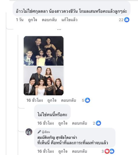และมีการตอบคำถามผู้ติดตามที่ได้ถามถึงภรรยาและลูกๆ “อ้าวไม่ใช่ศกุลตลา น้องสาวดวงชีวัน โกมลเสนหรือคะ แล้วลูกๆ ล่ะ” ซึ่ง สุรชัย สมบัติเจริญ ได้ตอบว่าเรื่อง “ที่เห็นนี่ คือหน้าที่และภาระที่ผมทำจบแล้ว”