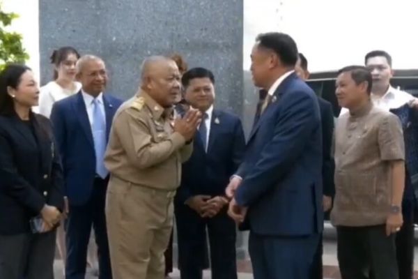 จากนั้น นายอนุทินใช้มือตบไปที่ไหล่และมีการพูดคุยกันสักพัก ก่อนที่นายอนุทินจะเดินทางขึ้นไปยังห้องทำงาน