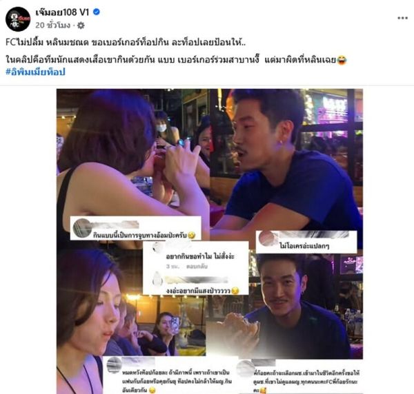 ขณะที่เพจ เจ๊มอย108 V1 ก็แคปคอมเมนต์ดราม่าต่างๆ เรื่องนี้ร้อนแรงว่า หลิน กินแบบนี้เหมือนจูบทางอ้อม ไม่โอเคต่างๆ นานา พร้อมแคปชั่นว่า