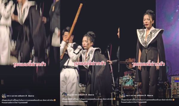 พร้อมแคปชั่นด้วยว่า “เห็นมุมกล้องด้านนี้ยิ่งตกใจกับอาการวูบหมดสติของตัวเอง มันน่ากลัวจริงๆ #หมอลำอลังการโชว์ #วูบหมดสติ”