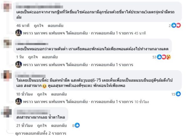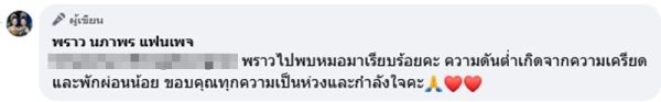 “พราวไปพบหมอมาเรียบร้อยคะ ความดันต่ำเกิดจากความเครียดและพักผ่อนน้อย ขอบคุณทุกความเป็นห่วงและกำลังใจค่ะ”