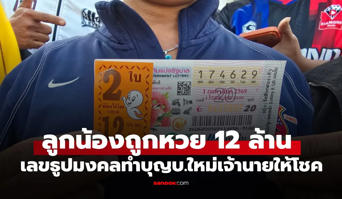 กลายเป็นเศรษฐีหน้าใหม่ชั่วข้ามคืนสำหรับผลสากกินแบ่งรัฐบาล งวดประจำวันที่ 1 กุมภาพันธ์ 2569 เมื่อพนักงานบริษัทเย็บเสื้อผ้าในจังหวัดบุรีรัมย์ ดวงเฮงถูกรางวัลที่ 1 รับเงินก้อนโตถึง 12 ล้านบาท เผยที่มาของเลขเด็ดสุดปัง ได้มาจากธูปมงคลในงานทำบุญเปิดบริษัทใหม่ของเจ้านาย